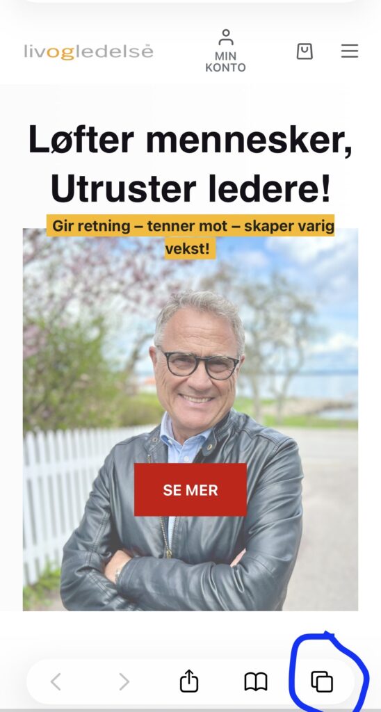 - Du kan Klikke på de to firkantene – App-bytteren – i nettleseren din for å hoppe rett inn neste gang. (se sirkelen på bildet her?)